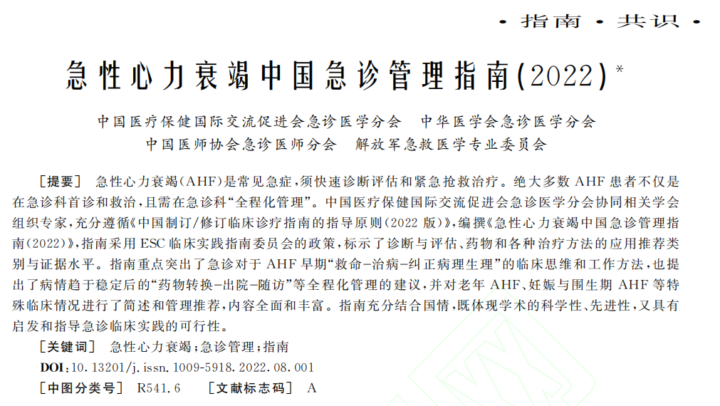 急性心力衰竭(acuteheartfailure,AHF)是指繼發於心髒功能異常而迅速發生或惡化的症狀和體征,並伴有血漿利鈉肽水平的升高。