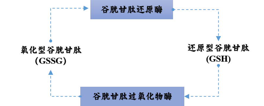穀胱甘肽還原酶(Glutathione Reductase, GR)是一種黃素酶,廣泛存在於人體心肝腎、紅細胞、單核巨噬細胞等組織細胞內。其主要的生理功能是催化氧化型穀胱甘肽(GSSG)變成還原型穀胱甘肽(GSH),GSH可防止血紅蛋白的氧化分解、維持巰基蛋白的活性、保證巰基蛋白的還原性及細胞的完整性。GR缺失會使細胞對氧化劑和抗生素更為敏感。