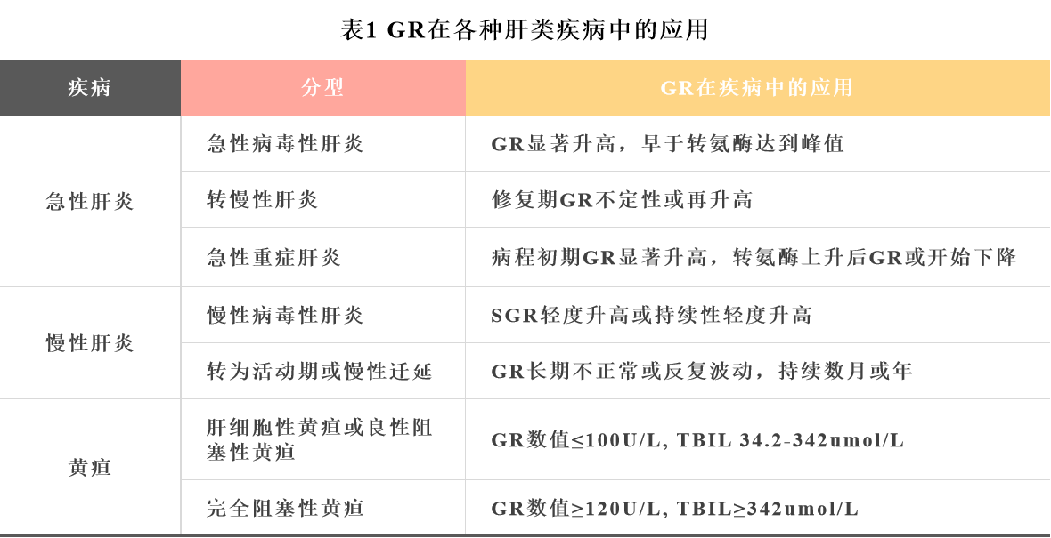 GR與丙氨酸氨基轉移酶(ALT)、天門冬氨酸氨基轉移酶(AST)聯合檢測可反饋患者肝髒實質受損進程和狀態。