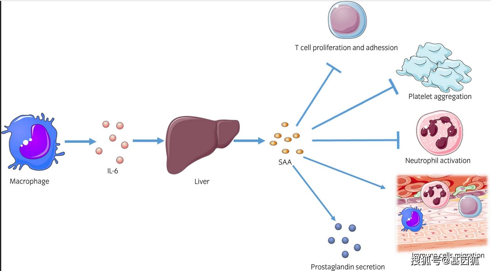 血清澱粉樣蛋白A是一種急性時相反應蛋白,其數值通常與感染程度呈正相關。用以評估急性相反應進程。SAA是個靈敏的參數,它在炎性反應大約8h後開始升高,且超過參考範圍上限時間早於CRP,然而CRP在正常人中的中位數值與參考範圍上限的差距,大約有10倍。在SAA中僅有5倍。輕微感染,例如,許多病毒感染,SAA升高要比CRP更為常見。