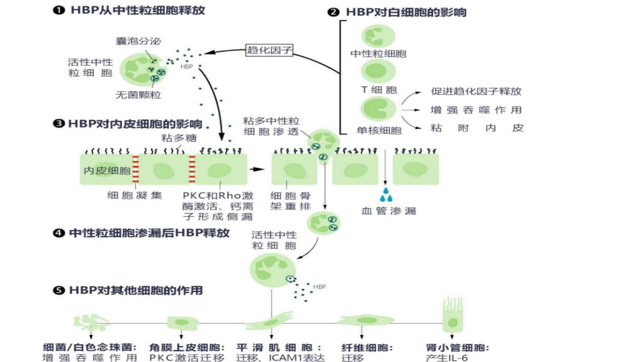 HBP可引起血管滲漏和組織水腫,其作為致病因子,是肝素、白蛋白等藥物治療膿毒症的潛在靶點。
